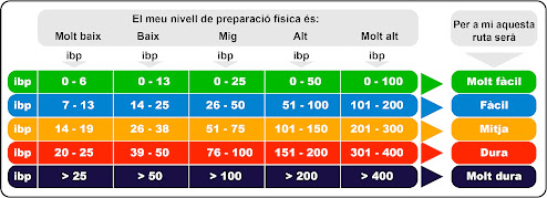 Cal tenir en compte que la duresa o l’esforç d’una ruta serà igual a: